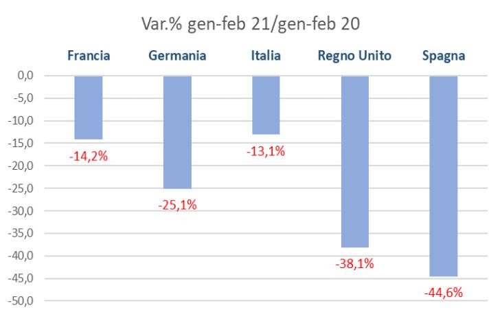 Mercato dell’auto in Europa ancora in discesa a febbraio (-20,3%)