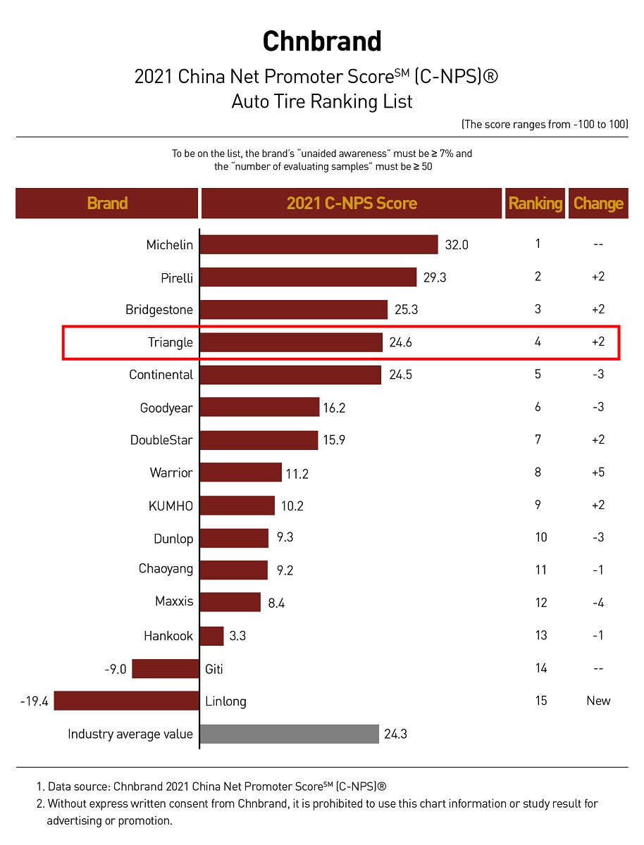 Triangle Tyre ha ottenuto il 4° posto tra i migliori marchi di pneumatici cinesi nel 2021, guadagnando 3 posizioni nel …