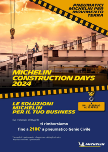 Dal 1 febbraio al 30 aprile 2024 Michelin attiva la promozione “Construction Days 2024” grazie alla quale sull’acquisto di almeno …