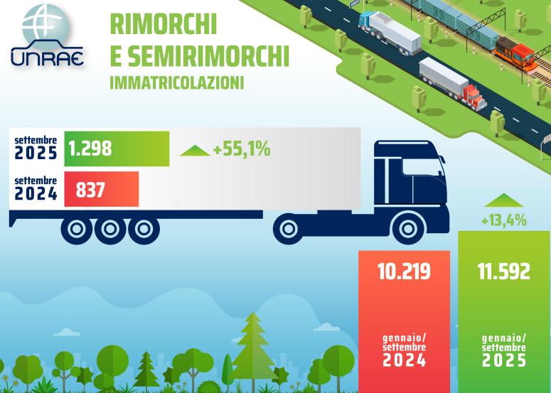Forte impennata dei trainati a settembre 2025: +55,1%